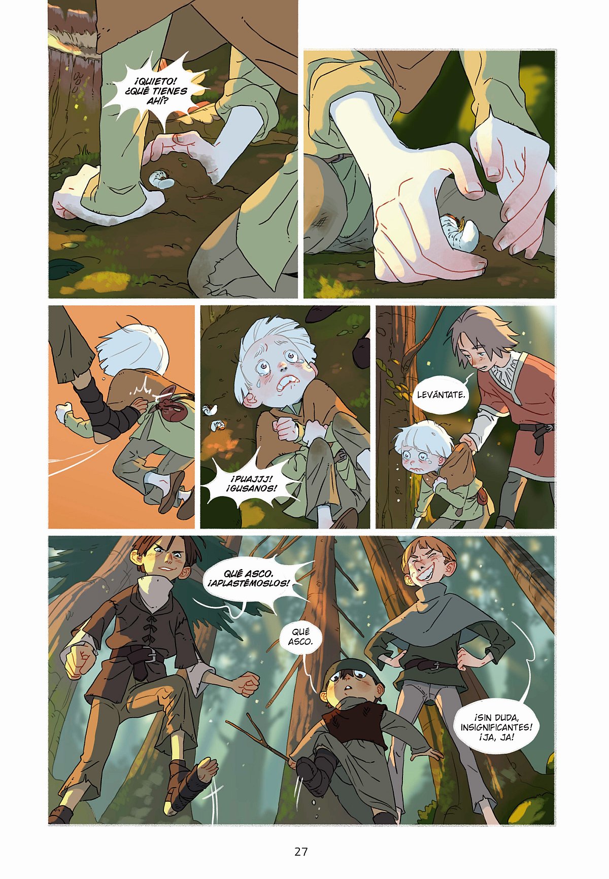 Martino es el hijo más joven y menos querido de una familia. Al ser albino se le considera el causante de toda suerte adversa, hasta el punto de que un día su padre lo repudia. Tras huir de casa, Martino no sólo tendrá que aprender a aceptar su diversidad, sino sobre todo comprender que no es la palidez de su piel o el color de su pelo lo que le hace sentirse tan solo y equivocado. Irene Marchesini y Carlotta Dicataldo crean un mundo rico y detallado, maravillosamente verosímil y, por tanto, aún más aterrador, en el que los marginados se protegen entre sí, en el que uno se vuelve loco si se le da tiempo a una larva para que se convierta en insecto y aprenda a volar, y en el que comprender la propia identidad real hace latir de vida el corazón.